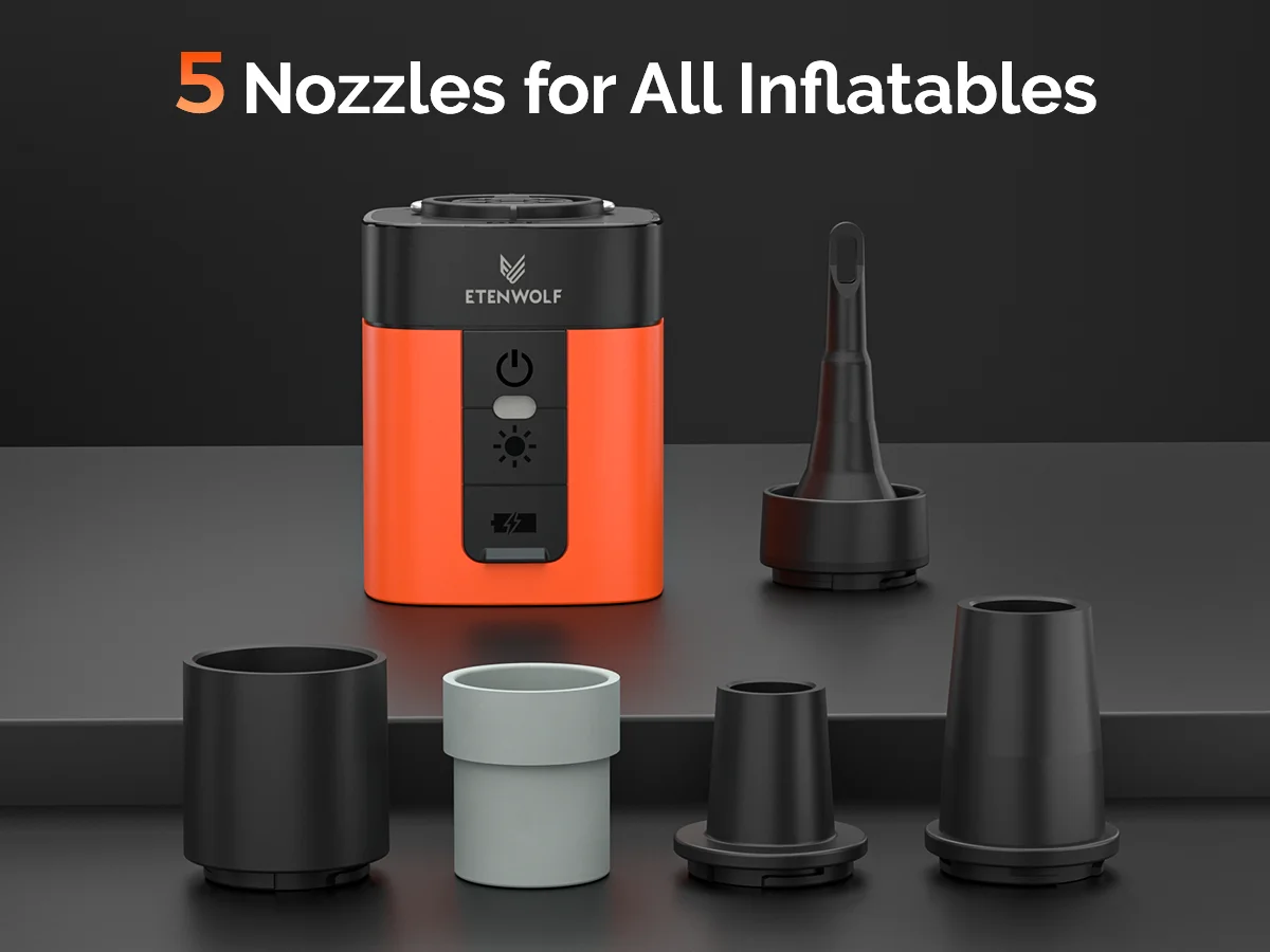 • Comes With 5 Gas Nozzles & Storage Bag – Ready for all types of inflatables.